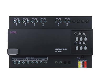 LED Dimmers Điện áp làm việc: 15 ~ 30V DC Mức tiêu thụ nguồn: 40mA / DC24V Kênh đầu ra LED: 6CH / 5A Điện áp đầu vào LED: DC12 ~ 30V Kích thước: 144 × 90 × 64 (mm) Lắp đặt đường ray DIN 35mm Giao tiếp: HDL Buspro Trọng lượng; 351g